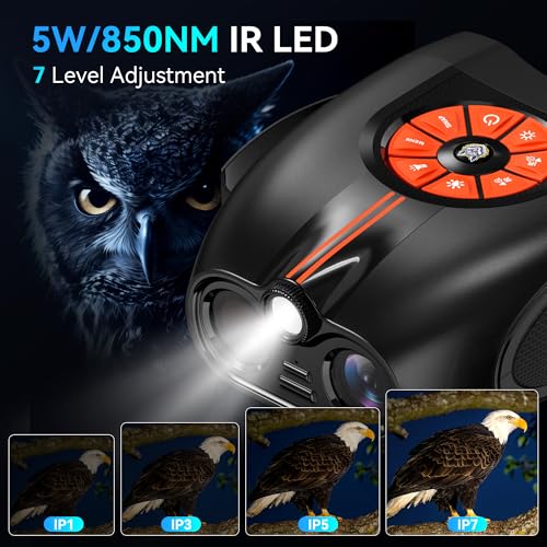 【800M Full-Dark Vision:Latest technology】Latest 5W 850NM IR Tech – Powered by latest 5W 850NM infrared technology with 7-level adjustable IR brightness, it delivers 0.5M-800M full-dark viewing range (14%-20% farther than 500-700M common models) and unlimited weak-light visibility. Whether you’re Mountaineering nocturnal game, camping in pitch-black woods, or patrolling dark yards, the advanced IR system ensures sharp, bright images