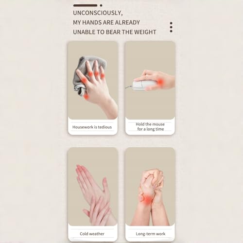 【Relax and Revitalize】Our hand massager offers three specialized modes—Health, Soothing, and Vitality—along with five customizable intensity levels, allowing you to tailor the experience from gentle relief to deep pressure for both hands. Complementing the massage therapy, four heat settings (113°F, 122°F, 131°F, 140°F) help stimulate circulation and ease tension. The advanced heating system warms up in just 8–10 seconds, delivering instant comfort for overworked muscles, joint discomfort, or seasonal stiffness. Whether you seek relaxation after long hours of use or soothing warmth on colder days, this device provides quick, effective relief right when you need it.