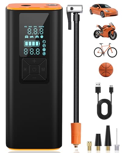 COMPLETE PROFESSIONAL ACCESSORIES:The perfect thoughtful gifts for any occasion — sure to be a hit with everyone, both men and women.includes USB-C cable, storage bag, manual, 4 specialized nozzles (for car/bicycle tires, sports balls, inflatable toys). Backed by 24/7 U.S. support and 1-year warranty, this reliable Air Pump is essential for commuters, RV travelers, and outdoor adventurers.