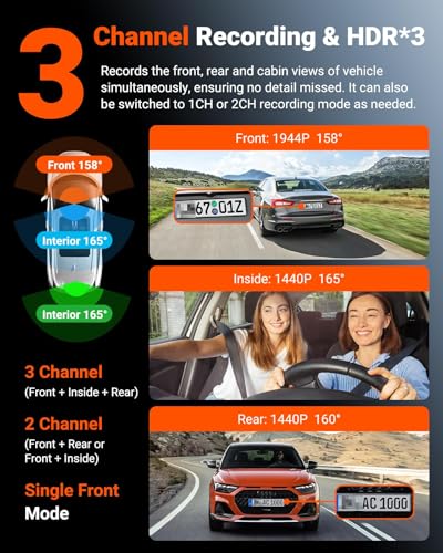 [2025’s Best Value 3 Channel Dash Cam] Vantrue N4S dashcam delivers superb performance based on cutting-edge IMX675 sensor. This front camera for car, combined with interior and rear lenses, captures clear details with a 2.7K+1440P+1440P resolution and a wide 158°+165°+160° angle, ensuring smooth recording. From N4 to All-new N4S, This car dash cam is a top choice for taxis and family vehicles.