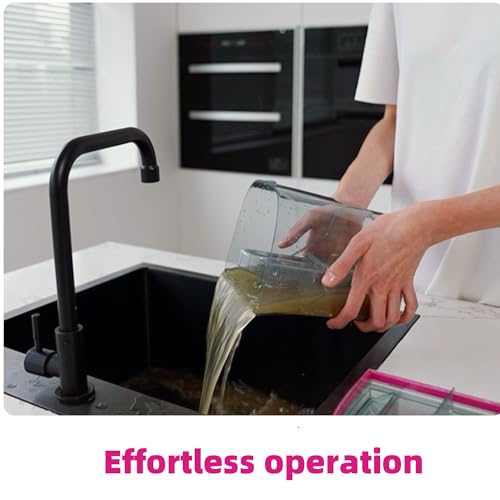 【Hygienic Dual-Tank System】: The separate clean water (0.34 gal) and dirty water (0.29 gal) tanks. An auto-shutoff function activates when the dirty water tank is full.