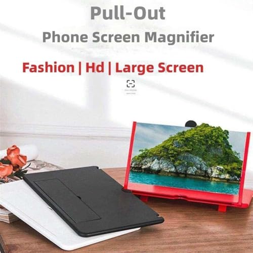 Specification: Screen Magnifier New Version, 2026 Mobile Phone Magnifier Screen with Stand Cellphone Holder, 10/12 Inch 3D HD Mobile Phone Amplifier for Watching Movies Videos, Supports All Smartphones (Black, 10”)