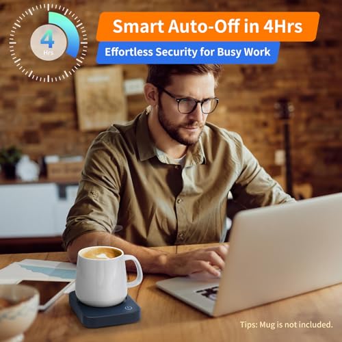Specification: VOBAGA Coffee Mug Warmer for Desk with Auto Shut Off & 3-Temp Settings, Coffee Cup Warmer with Smart Safety Alert Home Office Accessory, Perfect for Coffee, Tea, Milk (No Mug)