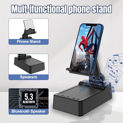 2-in-1 Bluetooth Speaker + Phone Stand:Cell phone stand with bluetooth speaker gadget gift, the phone stand allows you to free your hands,Enjoy louder, clearer sound and a built-in microphone for better hearing, perfect for the elderly. Ideal as a practical gift for any occasion (Please Note it is not a charging stand.)