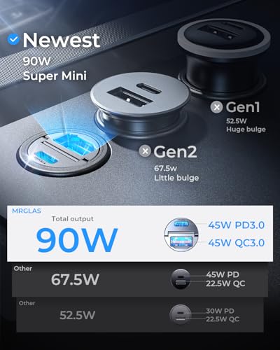 Specification: MRGLAS 90W Fast iPhone 17/16 Car Charger, USB C Car Charger with Type C Cable, PD45W & QC45W, Flush Fit, All Metal, Cigarette Lighter USB Adapter for iPhone 17 16 15 Samsung S25 S24 S23 Ultra Pixel 10