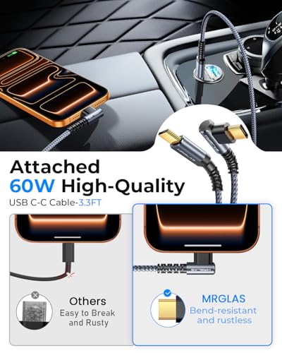 MRGLAS 90W Fast iPhone 17/16 Car Charger, USB C Car Charger with Type C Cable, PD45W & QC45W, Flush Fit, All Metal, Cigarette Lighter USB Adapter for iPhone 17 16 15 Samsung S25 S24 S23 Ultra Pixel 10