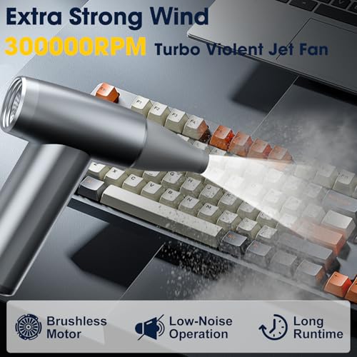 Specification: Metal Electric Compressed Air Duster, 300000RPM Brushless Motor with Stepless Speed, Rechargeable Cordless Mini Blower for Computer Keyboard Cleaning, Car Detailing, House and Outdoor Use(Grey)