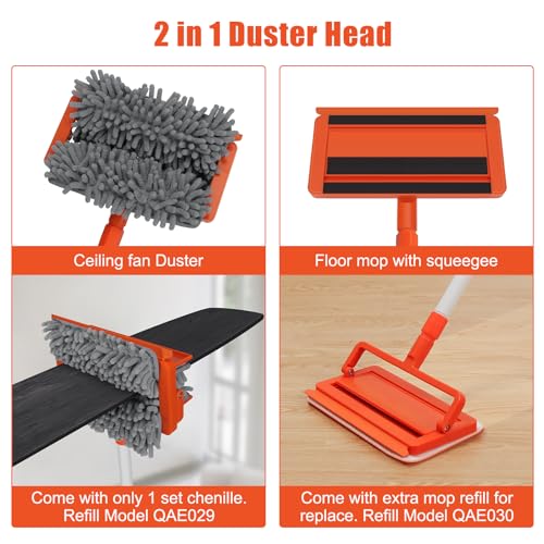 Specification: Qaestfy Ceiling Fan Cleaner Duster with 62.5‘’ Extendable Long Handle Ceiling Fan Blade Cleaning Tool, Reusable Chenille & Microfiber Mop Head for Dusting Ceiling Fan Baseboard Wall Floor