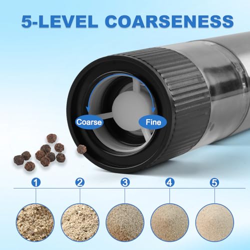 Customizable Grind for Versatile Use: Custom Grind Control, this battery operated electric salt and pepper grinder set features an adjustable knob and a durable ceramic core. Rotate the bottom knob to select your preferred grind size. Suitable for salt, pepper, and various solid spices, it works well in home kitchens, restaurants, parties, or outdoor picnics