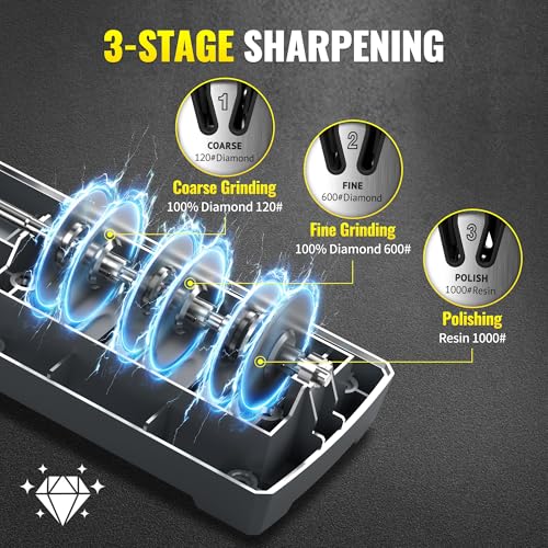 Knife Sharpener Electric for Kitchen – Kitchen Knife Sharpener 3-Stage – 15-Degree EdgeSelect Angle – Knife Sharpeners 100% Diamond Abrasive – Fast Sharpening, Repair, Restore, Polish