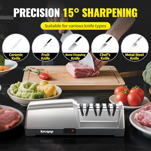 Specification: Knife Sharpener Electric for Kitchen – Kitchen Knife Sharpener 3-Stage – 15-Degree EdgeSelect Angle – Knife Sharpeners 100% Diamond Abrasive – Fast Sharpening, Repair, Restore, Polish