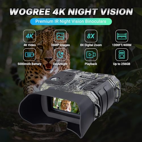 【Stunning Clarity, Capture the Night】Unlock the night’s details with the WOGREE Night Vision Goggles. Engineered with 4K Ultra-HD video and 36MP photo capabilities, it delivers exceptional clarity after dark. The 3-inch HD display enables instant preview and playback. Whether for wildlife observation or camping, this device stands as your trusted dark companion.