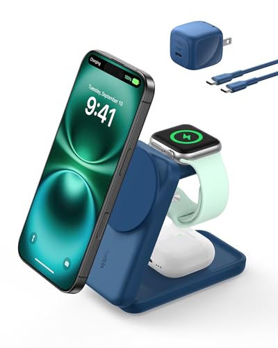 Specification: Belkin MagSafe Charger Compatible, 3-in-1 Charging Station, Qi2.2 25W Magnetic Wireless Charger Dock, Foldable Charging Stand for iPhone 17/16/15, Apple Watch, AirPods, Pixel 10 (45W Adapter Included)