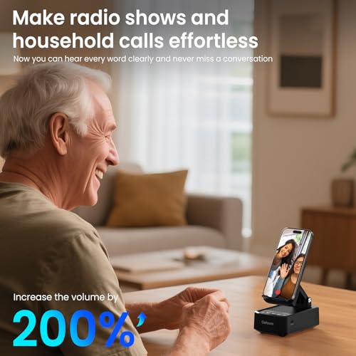 Specification: Cell Phone Stand with Instant Wireless Induction Bluetooth Speaker, No Bluetooth Pairing Needed, 1-Second Connection, HD Surround Sound, Practical Gifts for men, women, Dad, Mom, Hearing Impaired