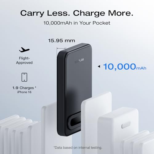 [10,000mAh in Your Pocket] – Compact yet mighty, RAPID Mag’s 10,000 mAh battery offers all-day performance in a sleek, pocket-friendly size. Despite its slim build, it can charge an iPhone 16 up to 1.9 times—enough power to stay connected through work, travel, or long outings. Lightweight and easy to carry, it’s the perfect balance between portability and capacity.