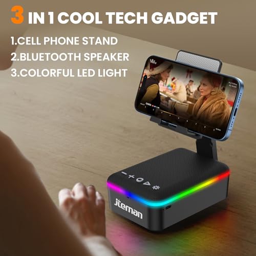 JTEMAN Gifts for Men Women,Cell Phone Stand with Bluetooth Speaker,LED Light,and Lanyard,Cool Tech Gadgets,Unique Birthday Gifts for Men Husband Mom Dad