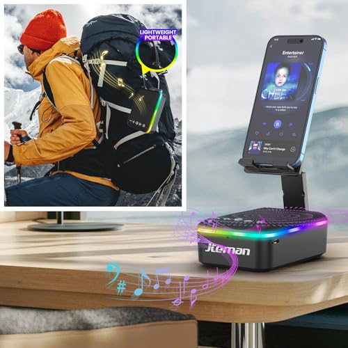Newly upgraded multifunctional gadget: JTEMAN multifunctional device combines a portable Bluetooth speaker, cell phone stand, LED light, lanyard and built-in microphone. Whether you’re indoors or outdoors, the detachable lanyard ensures it’s easy to carry and perfect for all your adventures. It also brings great convenience for watching videos and making hands-free calls, Ideal birthday gift for women men!