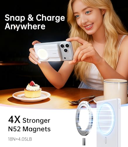 L03 for Magsafe Portable Charger, Ultra Slim 5000mAh Magnetic Power Bank with Selfie Light & Stand, Selfie Ring Fill Light Fast Charging Wireless Battery Pack for iPhone Air/17/16 Pro Max White