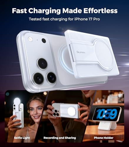 Specification: L03 for Magsafe Portable Charger, Ultra Slim 5000mAh Magnetic Power Bank with Selfie Light & Stand, Selfie Ring Fill Light Fast Charging Wireless Battery Pack for iPhone Air/17/16 Pro Max White