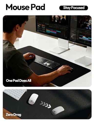 LARGE MOUSE PAD: With our large desk pad, say goodbye to small extra mouse pad. Make your desk top looks tiny and professional. With special suede design for back side,increase friction resistance with the desktop, Non slip. The friction resistance is increased by 70% than that of double-sided leather.