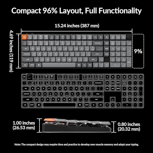 Specification: Keychron K17 Max 96% Layout QMK/Launcher Ultra-Slim Wireless/Type-C Wired Mechanical Keyboard with White LED Backlit, Low-Profile Gateron Mechanical Brown Switch Compatible with Mac Windows Linux
