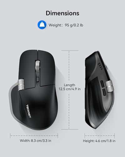 Specification: TECKNET Wireless Mouse, Bluetooth Mouse (BT5.0/5.0 & 2.4G) Rechargeable 4800 DPI Ergonomic Optical Mouse with 6 Adjustable, Quiet Clicks, USB A Receiver, 7 Buttons, Wide Compatibility – Black